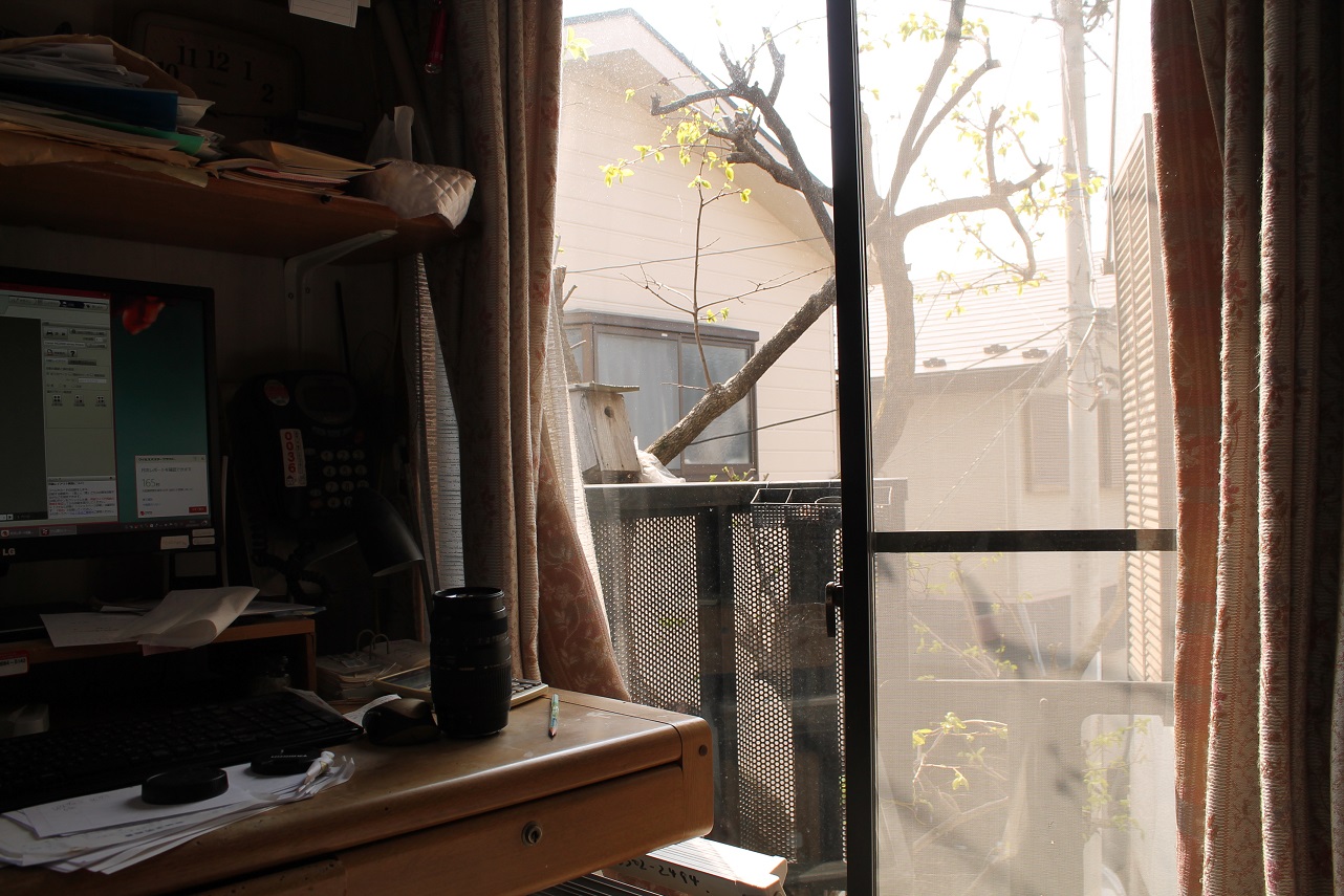 窓から手の届く所に巣箱を設置